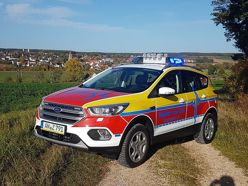 1x Verbandskoffer, Knickkopflampe, Navigationssystem, FMS Analog-Funk, Digitalfunkgerät, 1 AED (LIFEPAK® 1000), CO-Warngerät
